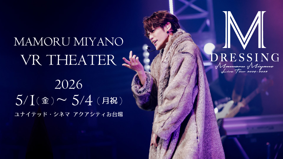 今回【MAMORU MIYANO VR THEATER「VACATIONING!」】の開催が決定しました。2025年12月に開催したライブツアー「VACATIONING!」神奈川・横浜アリーナ公演 Day1より厳選した楽曲を8K VR LIVE にてお届けいたします。